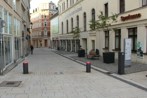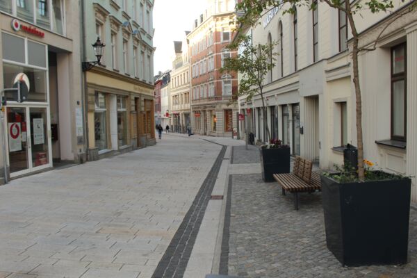 Durch die Stadt Annaberg-Buchholz erfolgt der grundhafte Ausbau der wichtigsten Einkaufsstraße der Stadt. Es handelt sich bei der Maßnahme um eine Fußgängerzone im denkmalgeschützten Altstadtbereich, die auf 365 m Länge, mit sehr hohen Anforderungen an die Gestaltung und die Barrierefreiheit komplett erneuert wird. Zusätzlich sind eine Platzgestaltung sowie der Neubau von Stützwänden erforderlich. Es handelt sich um ein sehr kleinteiliges Bauvorhaben über mehrere Jahresscheiben. Bei der Umsetzung müssen der Weiterbetrieb und die Anlieferung von ca. 50 Geschäften berücksichtigt werden. Neben dem Oberbau erfolgt die komplexe Erneuerung des gesamten Leitungsbestandes als koordinierte Gemeinschaftsmaßnahme.