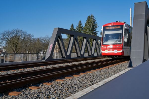 Der VMS hat mit der Umsetzung der 2. Stufe die bestehende Eisenbahnstrecke von Chemnitz über Thalheim nach Aue in das Chemnitzer Modell integriert. Die Baumaßnahme umfasste neben der Anpassung des Spurplanes im Bf Chemnitz Süd, die Errichtung einer Schnittstelle zwischen EBO und BOStrab, die Herstellung eines 3,4 km langen zweigleisigen Streckenabschnittes und dreier Kreuzungsbahnhöfe, den Neubau / die Verlegung von vier Haltepunkten und die komplette Instandsetzung der Bestandsanlagen. Der Ingenieurbau umfasste den Neubau von 6 EÜ, 6 DL und 100 m Stützmauer. Die neue EÜ am km 5,560 mit einer Stützweite von 20,70 m überquert die Olbernhauer Straße im Stadtgebiet von Chemnitz als 2-gleisiges trogförmiges Stahlfachwerk mit einer Bauhöhe von 4,70 m.
