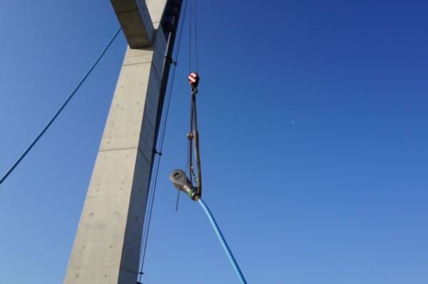 - Stahlbetonpylon mit stählernem Einbauteil zum Anschluss der Seile