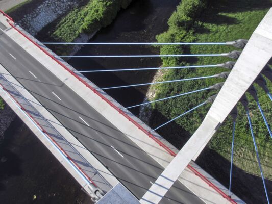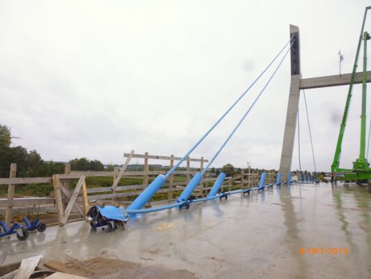 - Vollverschlossene Seile mit werkseitig aufgebrachter HDPE-Ummantelung, ZiE-Zustimmung im Einzelfall musste eingeholt werden, Neuheit in Deutschland